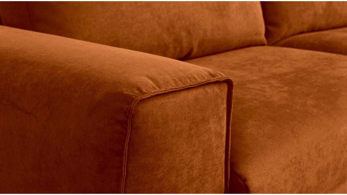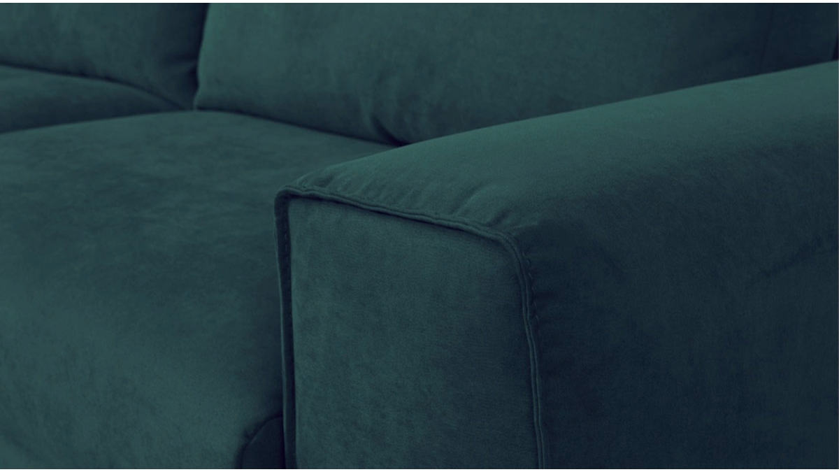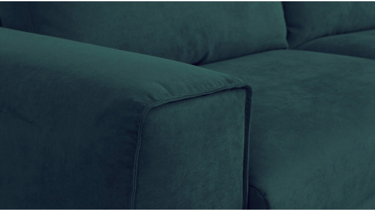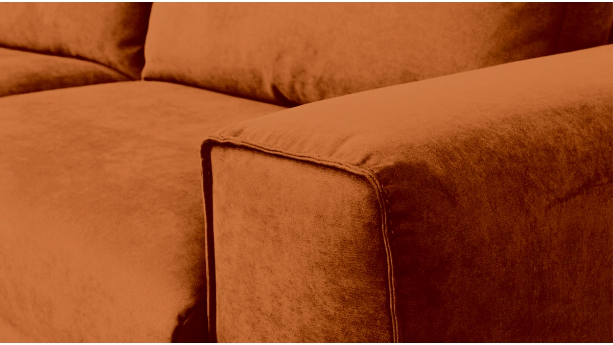 Matière | Velours | ▸ Velours tricoté 100% polyester de 310 g/m² déperlant et facile à nettoyer. Test Martindale : supérieur à 40 000 (20 000 étant un tissu à usage très intensif). Disponible en coloris : Beige, Vert, Terracotta et Bleu pétrole |