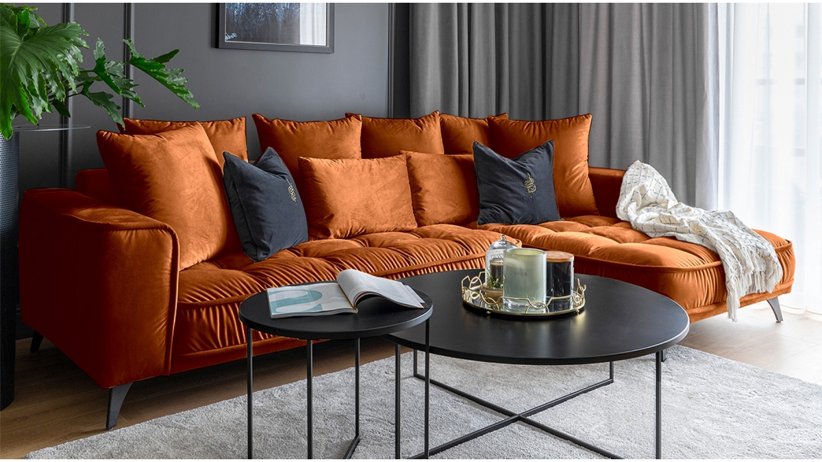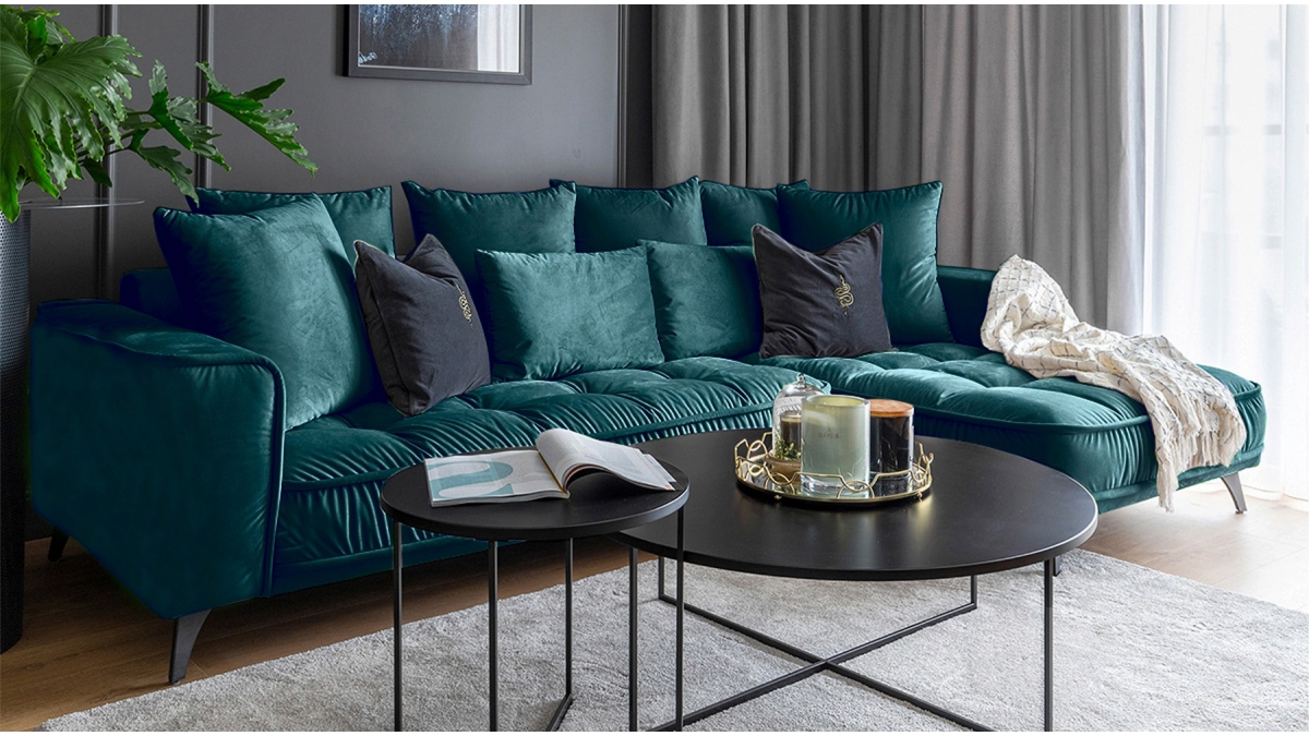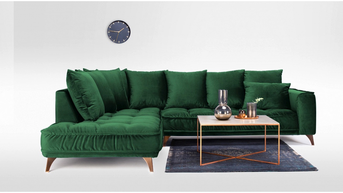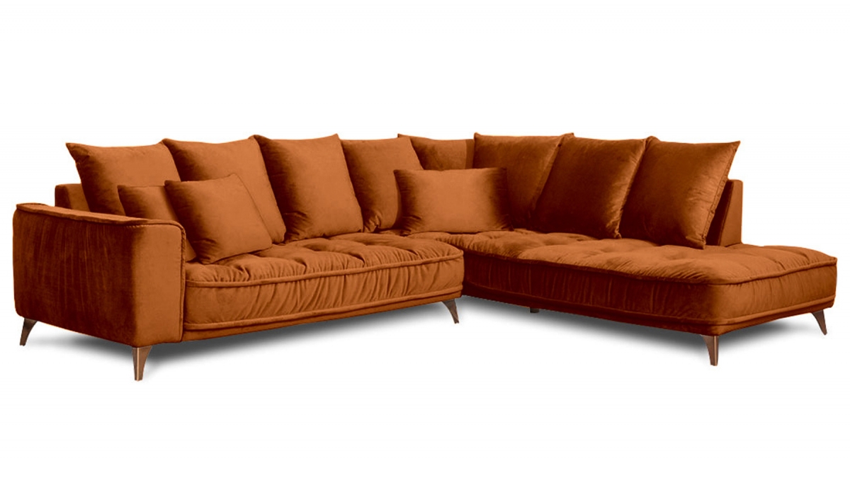 Le canapé d’angle 4 places Altamo est recommandé pour les personnes qui recherchent du mobilier distingué pour mettre l’accent sur un style d’intérieur atypique. Les assises matelassées douces avec effets froissés, les coutures croisées et les pieds en métal contribuent au style unique de ce canapé en velours. Ses coussins permettent de s’adosser confortablement, aussi bien contre le dossier du canapé que contre les accoudoirs. Le canapé d’angle en velours Altamo est parfait pour les personnes qui cherchent des décors audacieux et n’aiment pas l’ennui à la maison.