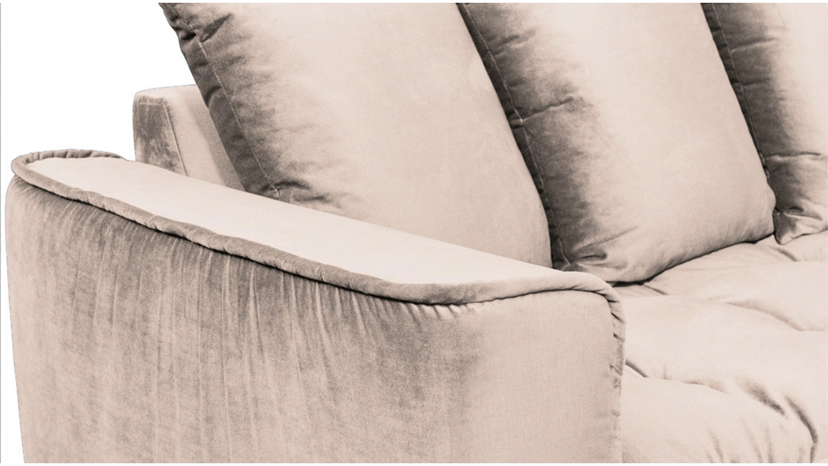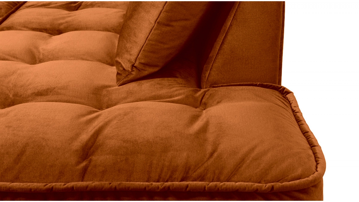 Matière | Velours | ▸ Velours tricoté 100% polyester de 310 g/m² déperlant et facile à nettoyer. Test Martindale : supérieur à 40 000 (20 000 étant un tissu à usage très intensif). Disponible en coloris : Beige, Vert, Terracotta et Bleu pétrole |