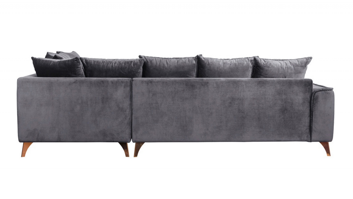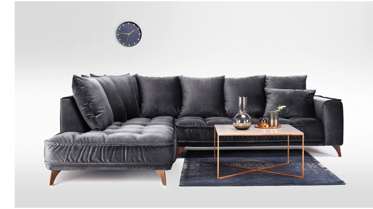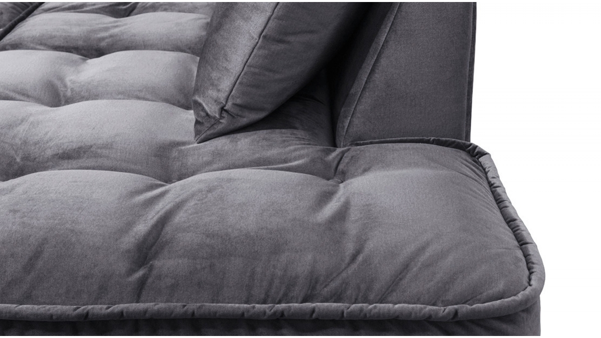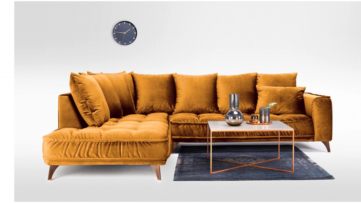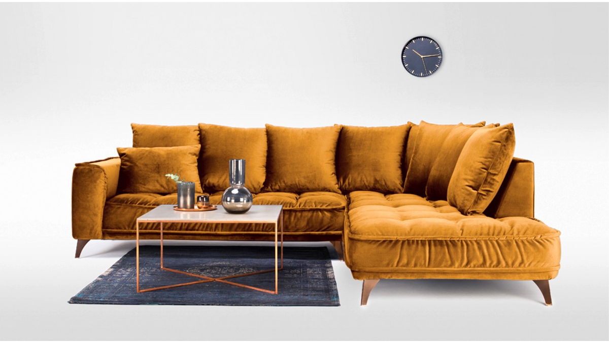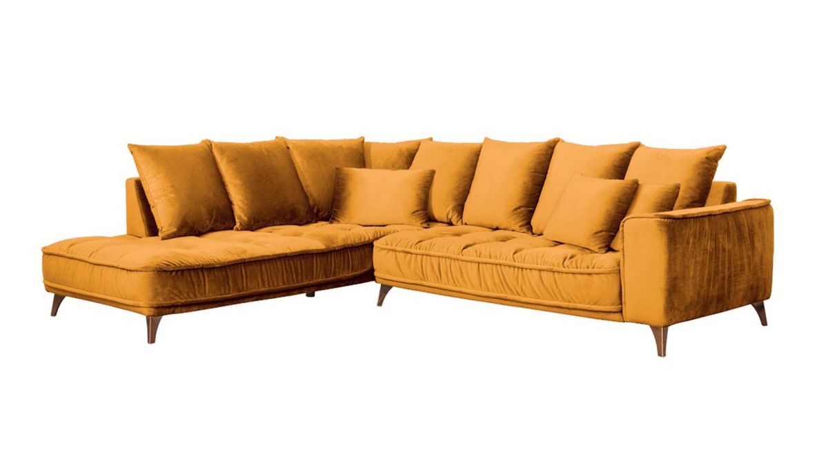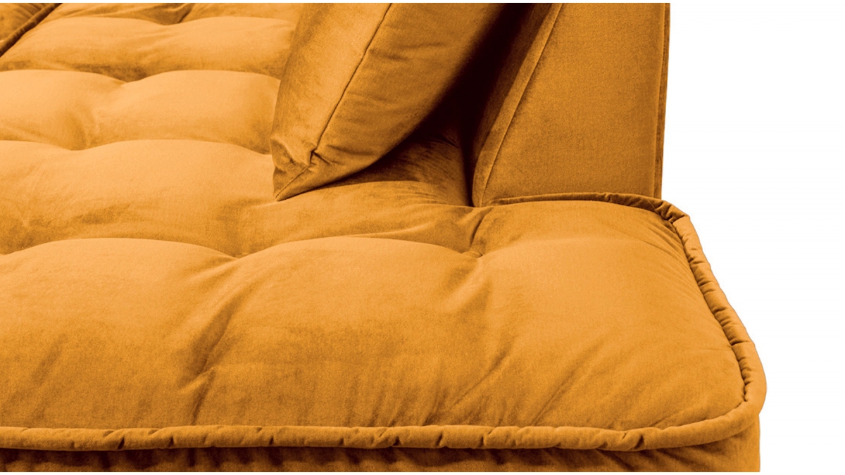Le canapé d’angle 4 places Altamo est recommandé pour les personnes qui recherchent du mobilier distingué pour mettre l’accent sur un style d’intérieur atypique. Les assises matelassées douces avec effets froissés, les coutures croisées et les pieds en métal contribuent au style unique de ce canapé en velours. Ses coussins permettent de s’adosser confortablement, aussi bien contre le dossier du canapé que contre les accoudoirs. Le canapé d’angle en velours Altamo est parfait pour les personnes qui cherchent des décors audacieux et n’aiment pas l’ennui à la maison.