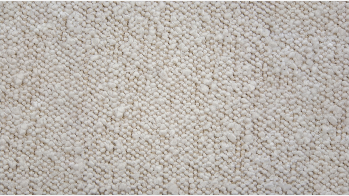 Matière | Laine Bouclée | ▸ Laine bouclée 95% polyester, 5% acrylique de 855 g/m². Disponible en coloris : Blanc cassé, Ecrue et Gris |