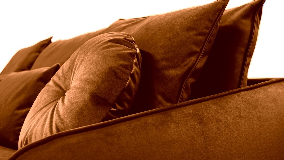 Canapé | Caractéristiques des dossiers | ▸ La structure est en hêtre et en épicéa avec des coussins rembourrés de 70% de latex et 30% de silicone |