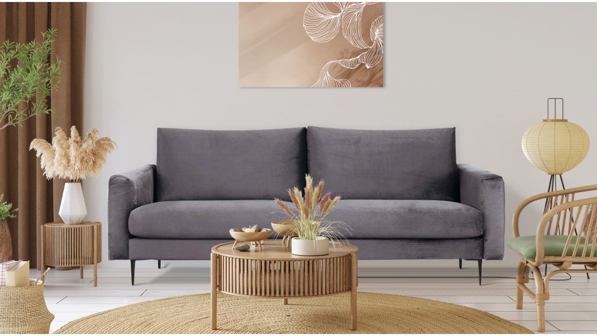 Le canapé 3 places Caruso allie la douceur d'un confort moelleux à la sobriété de son design élégant. C'est un canapé en velours au style et au confort rassurants pour un couple ou une petite famille. Ses assises larges et généreusement rembourrées sont une invitation à la détente. Ses lignes à la fois étroites et légèrement arrondies lui confèrent une esthétique harmonieuse. Profitez-en pour assortir facilement votre canapé à tous types d'intérieurs. Le revêtement en velours lui confère un charme authentique. L'alliance des ressorts et de la mousse polyuréthane très résiliente donne au canapé une bonne durée de vie.