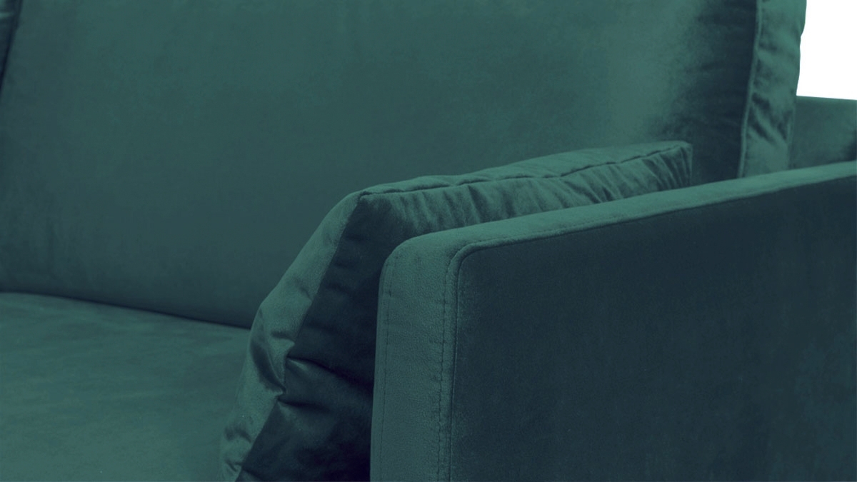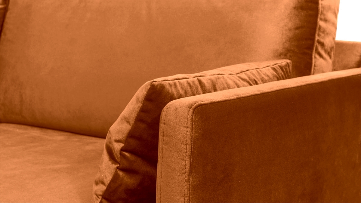Matière | Velours | ▸ Velours tricoté 100% polyester de 310 g/m² déperlant et facile à nettoyer. Test Martindale : supérieur à 40 000 (20 000 étant un tissu à usage très intensif). Disponible en coloris : Beige, Vert, Terracotta et Bleu pétrole |