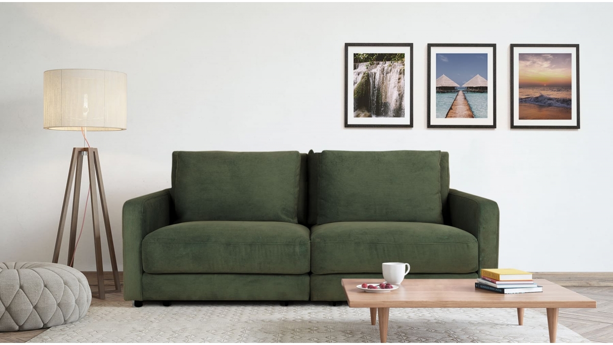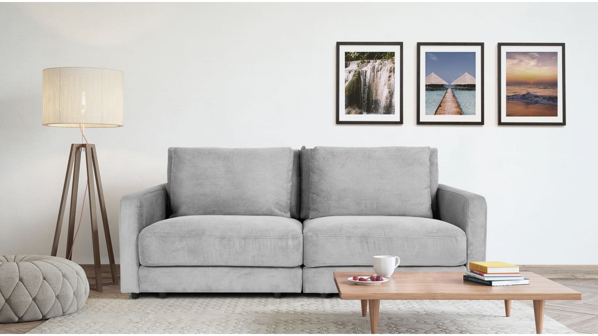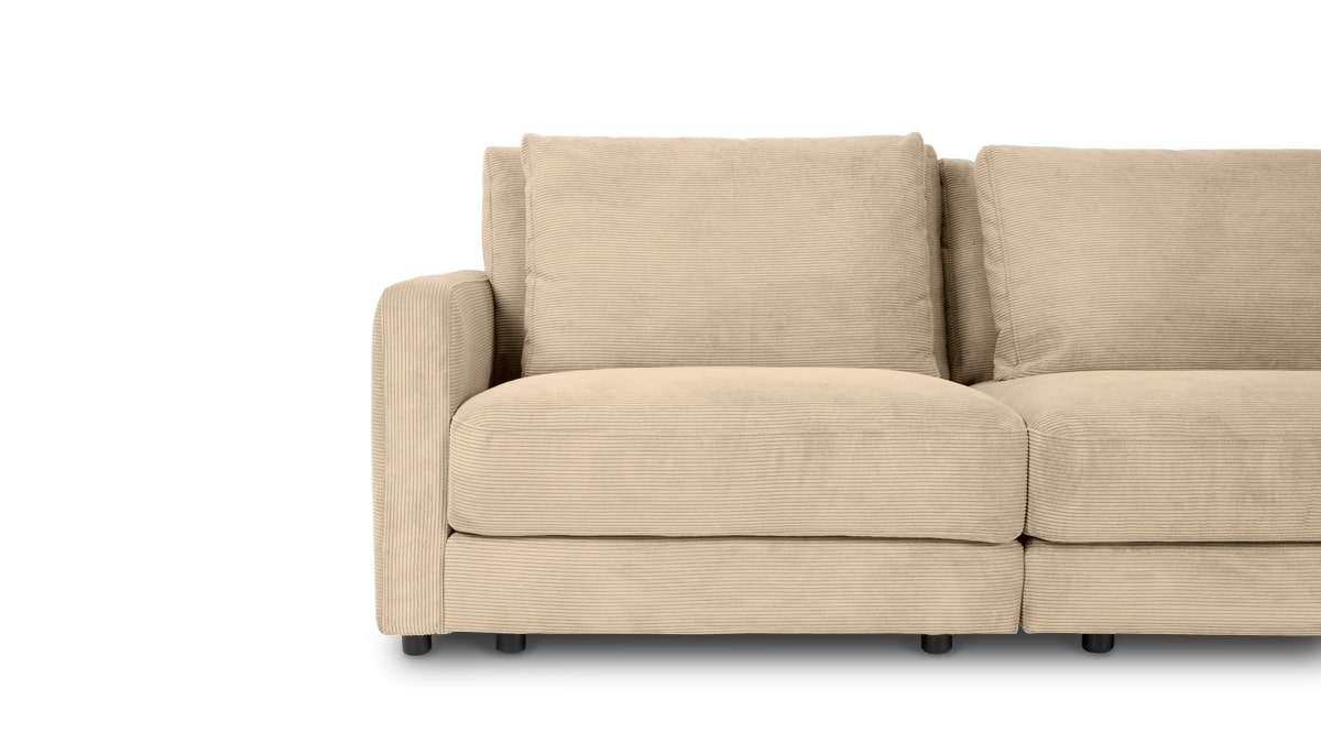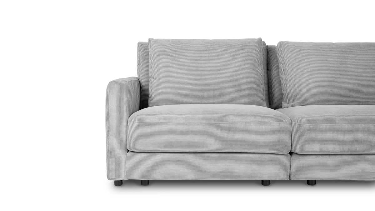 Matière | Velours Côtelé | ▸ Velours côtelé 100% polyester de 450g/m². Test Martindale : supérieur à 60 000 (20 000 étant un tissu à usage très intensif). Disponible en coloris : Gris clair - Beige - Bleu clair - Vert olive |