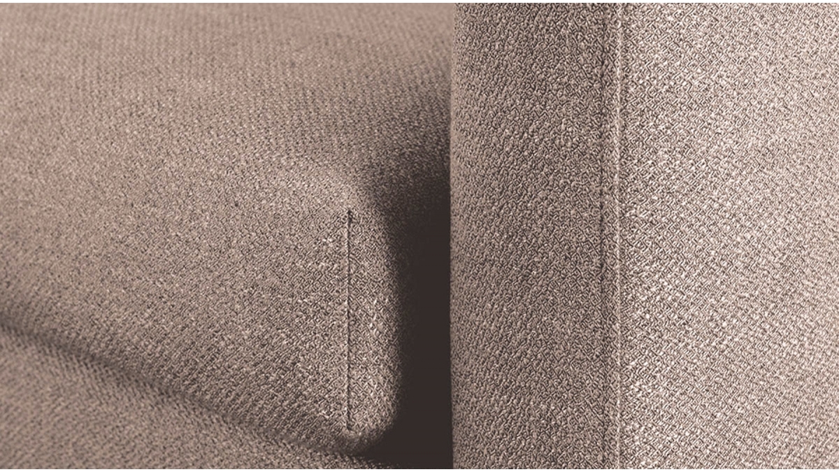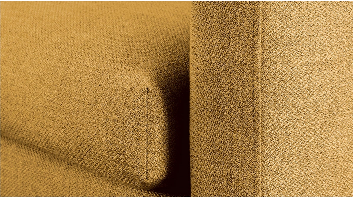 Matière | Tissu | ▸ Tissu tricoté 100% polyester de 300 g/m² déperlant et facile à nettoyer. Test Martindale : supérieur à 40 000 (20 000 étant un tissu à usage très intensif). Disponible en coloris : Beige – Taupe – Jaune – Bleu – Gris foncé et Gris clair |