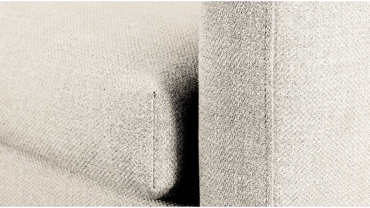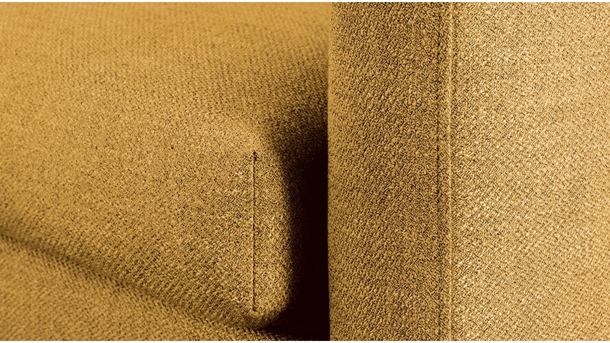 Matière | Tissu | ▸ Tissu tricoté 100% polyester de 300 g/m² déperlant et facile à nettoyer. Test Martindale : supérieur à 40 000 (20 000 étant un tissu à usage très intensif). Disponible en coloris : Beige – Taupe – Jaune – Bleu – Gris foncé et Gris clair |