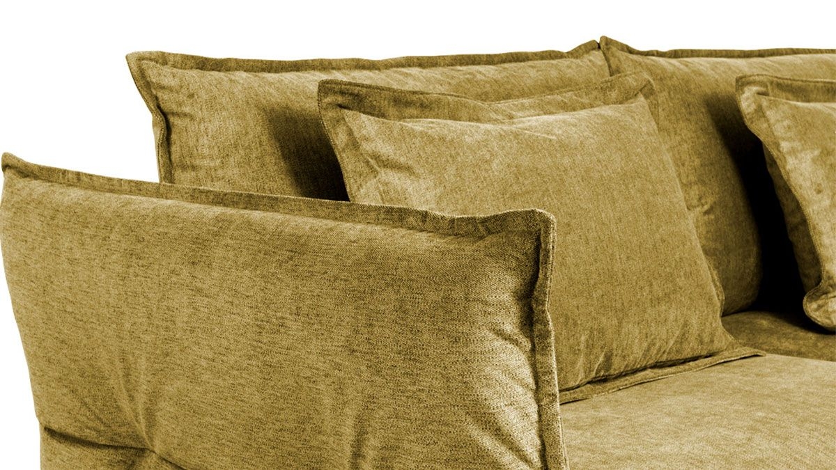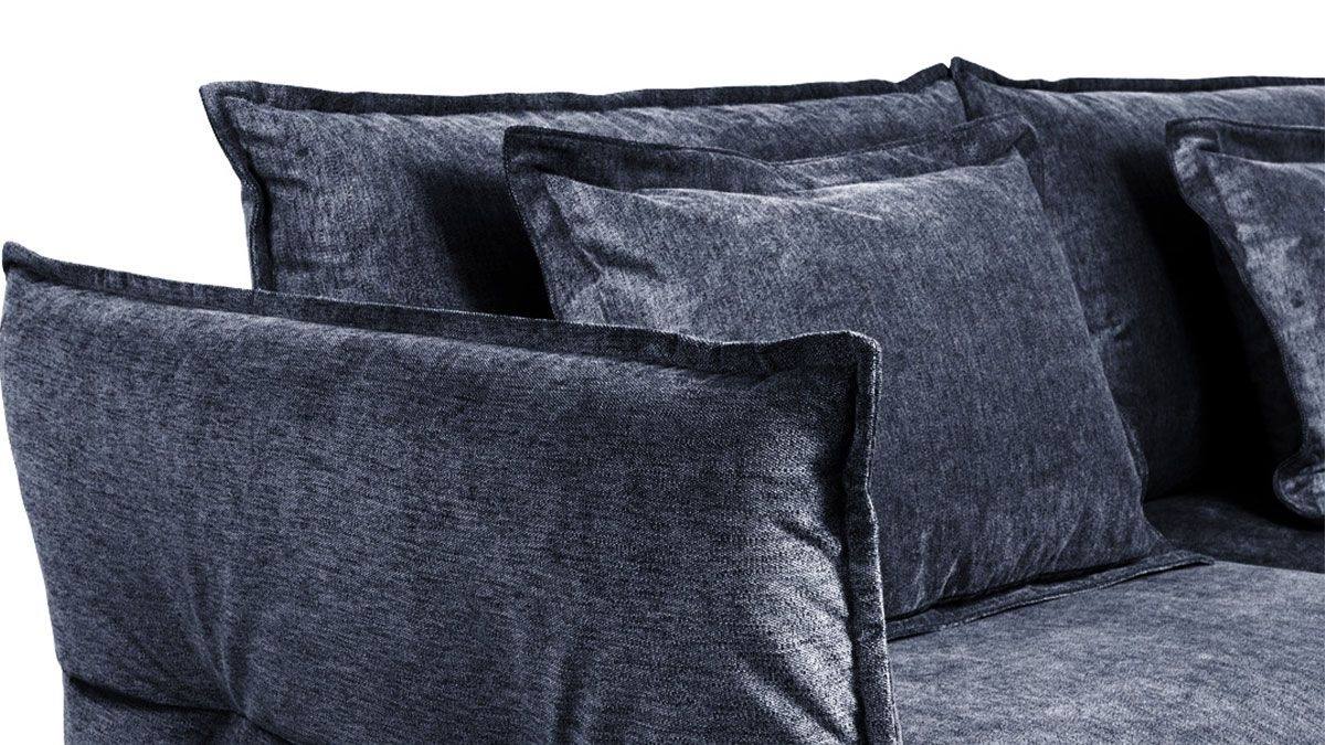 Canapé | Caractéristiques des dossiers | ▸ La structure est en hêtre et en épicéa avec des coussins rembourrés de mousse polyuréthane mémoire de forme densité 30 kg/m3 et de 70% latex, 30% silicone |