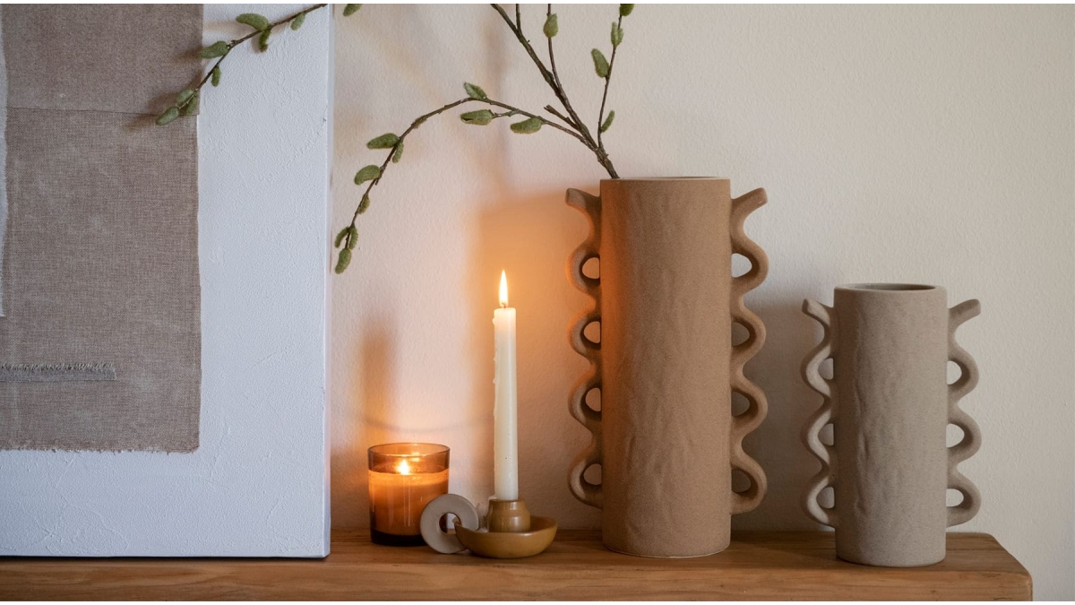 Apportez une touche chaleureuse et rustique à votre intérieur avec ce bougeoir en céramique beige. Ses lignes arrondies et sa anse lui confèrent un style contemporain.