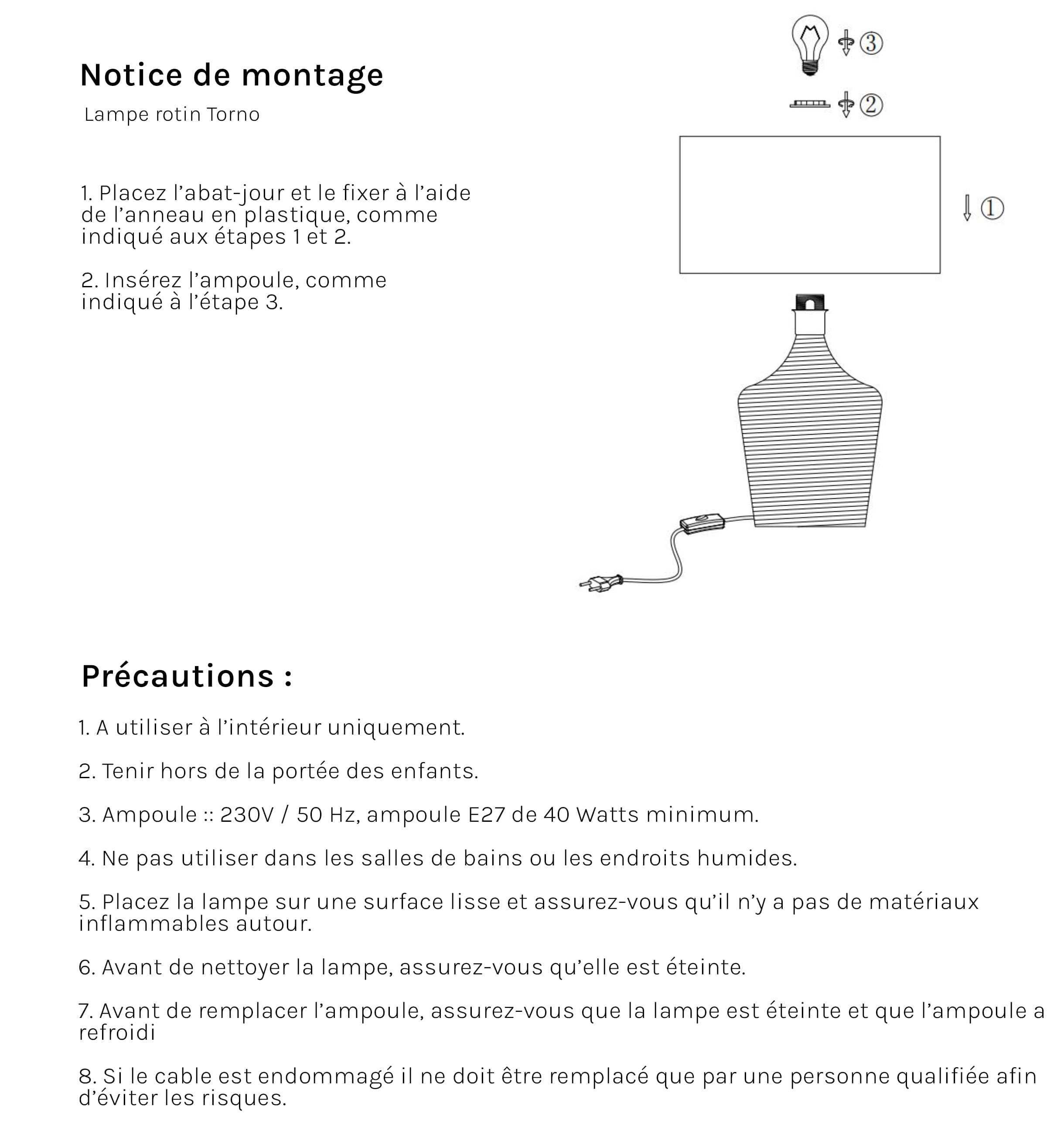 Décoration | Matière | ▸ Rotin et lin. Ampoule : E27 MAX40W. Non inclus |