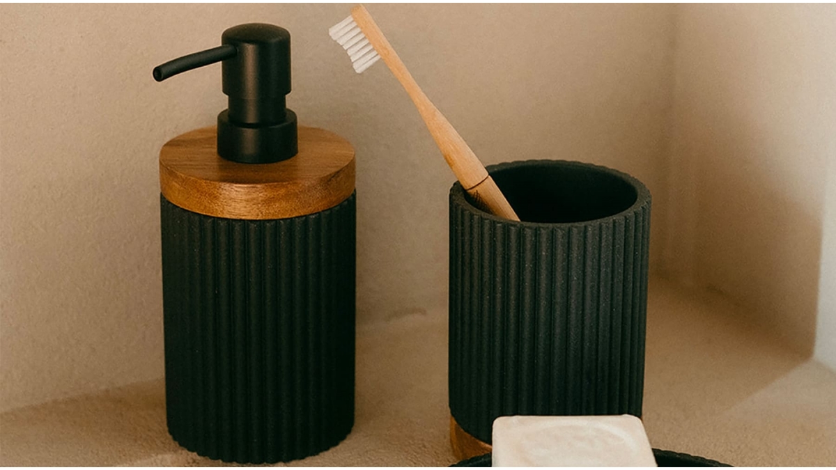 Une... Deux... et bien d'autres brosses à dents prendront place dans ce pot à brosses à dents en résine noir accompagnée de bois d'acacia. Pensez à la panoplie complète de la collection LAGO pour une décoration harmonieuse.