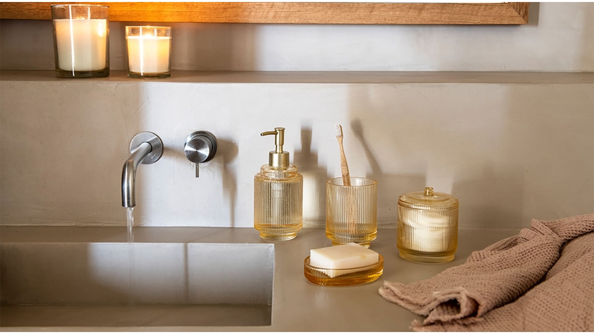 Vous avez craqué pour notre collection AQUA en verre strié ? Accompagnez votre vasque de notre porte brosse à dents. Il fera son petit effet avec sa couleur jaune !
