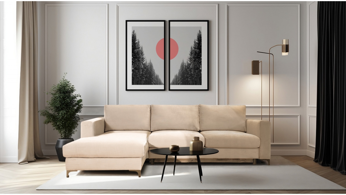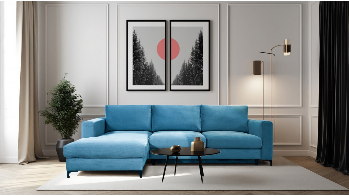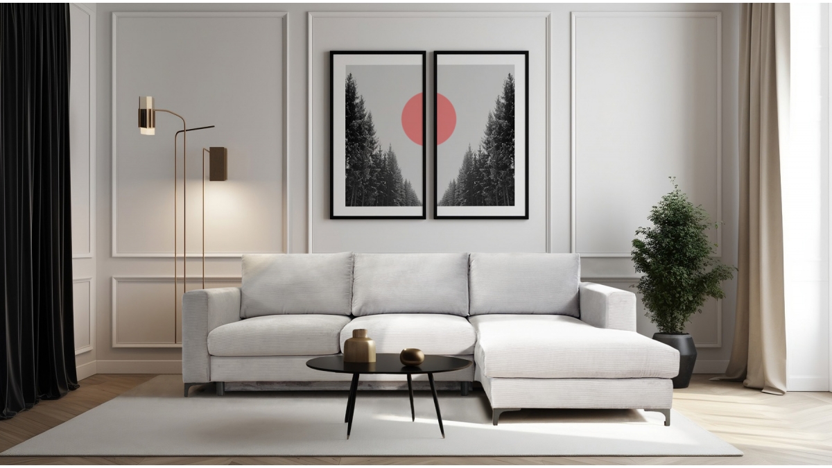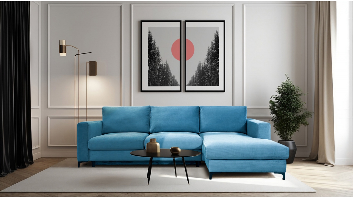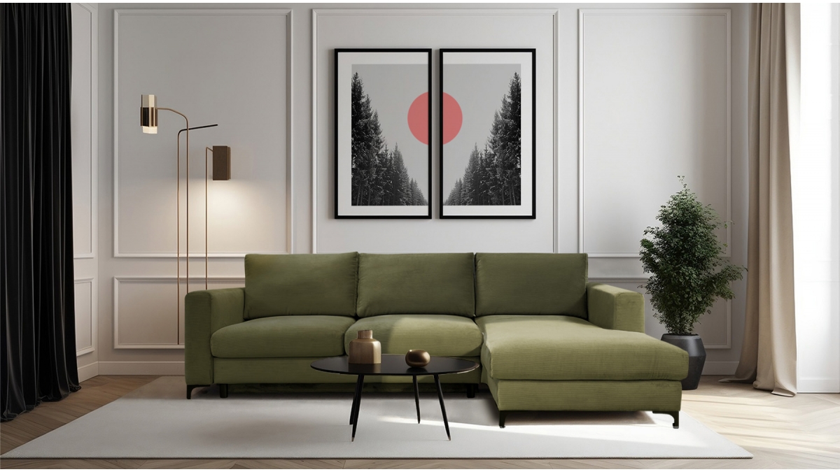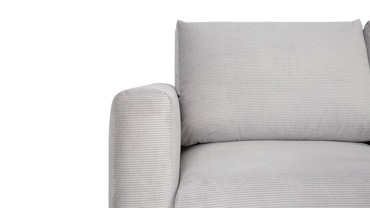 Matière | Velours Côtelé | ▸ Velours côtelé 100% polyester de 450g/m². Test Martindale : supérieur à 60 000 (20 000 étant un tissu à usage très intensif). Disponible en coloris : Gris clair - Beige - Bleu clair - Vert olive |