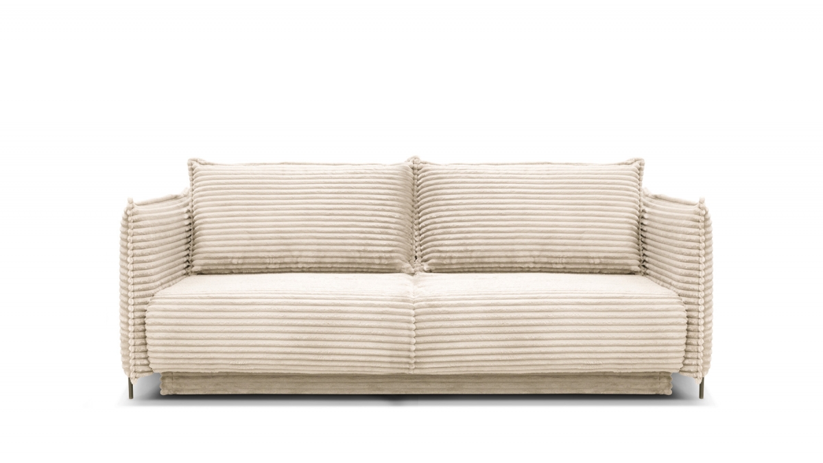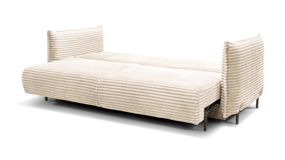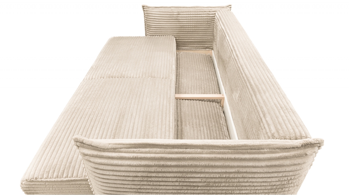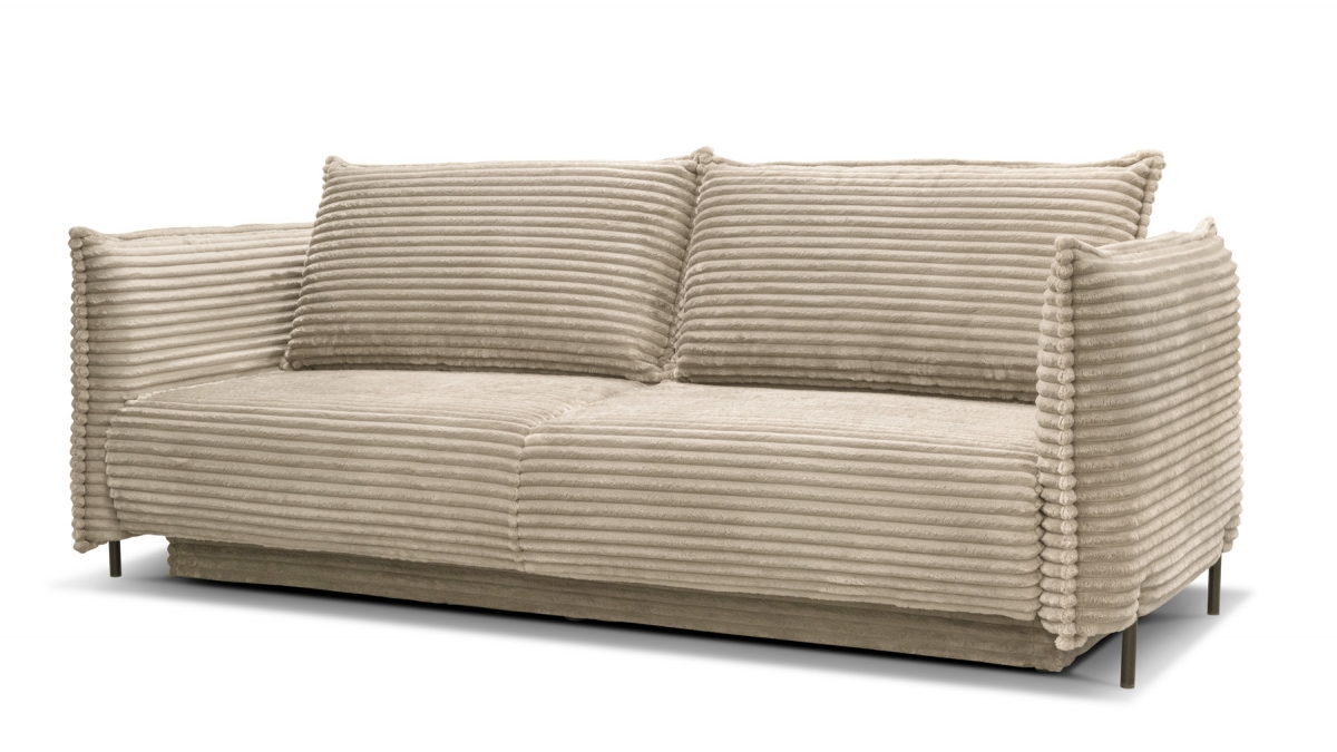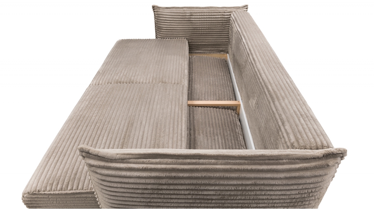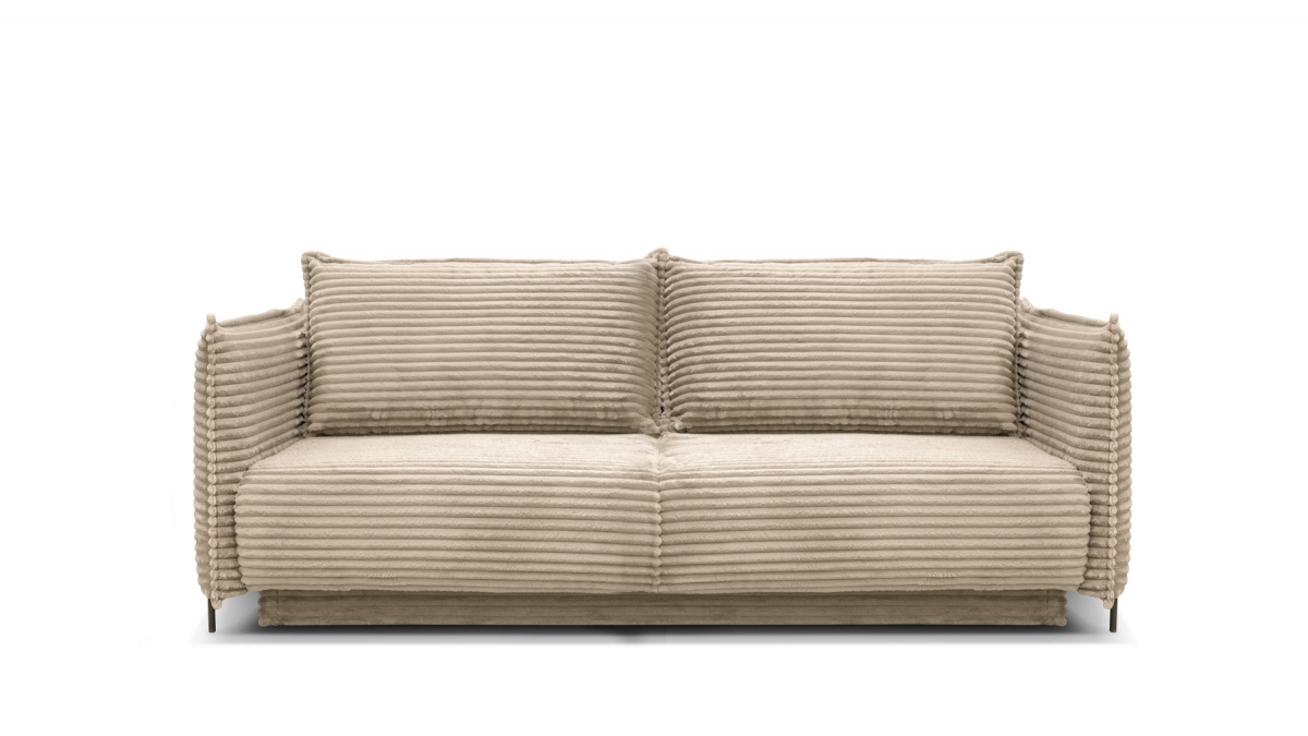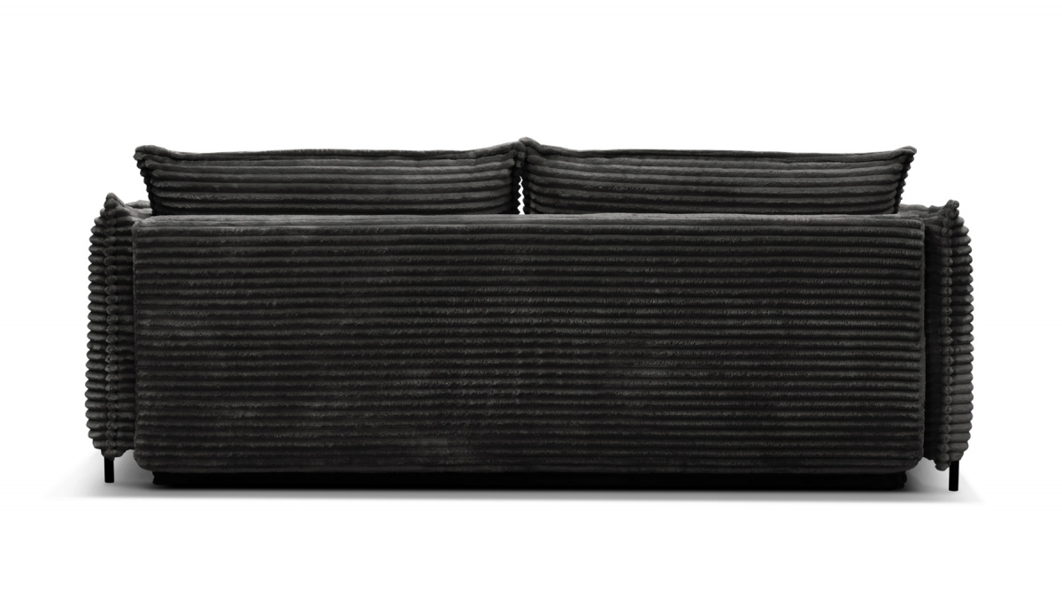 Rendez votre salon incontournable en craquant pour le canapé convertible en velours côtelé Sorrento. Son design balance entre les accoudoirs fins et très droits, l’assise large et confortable et le dossier aux coussins légèrement inclinés. Ce canapé 3 places joue aussi bien sur le plan esthétique que pratique : en quelques secondes, transformez-le en couchage deux places idéal pour recevoir ou vous détendre.