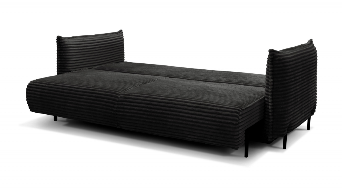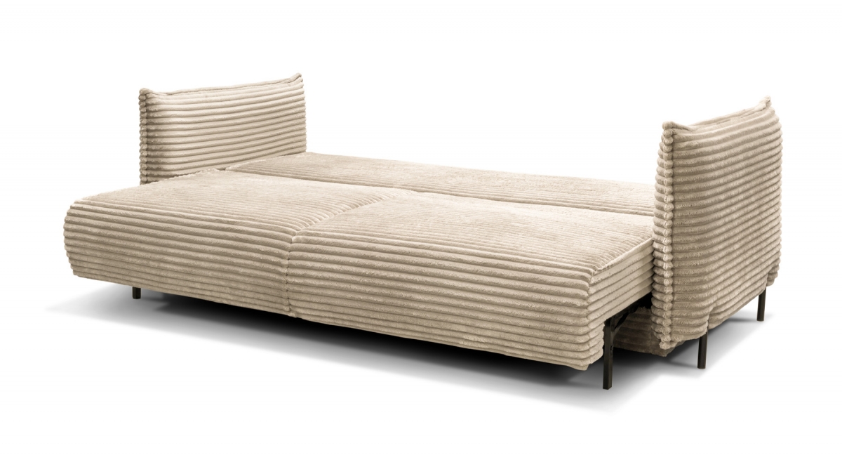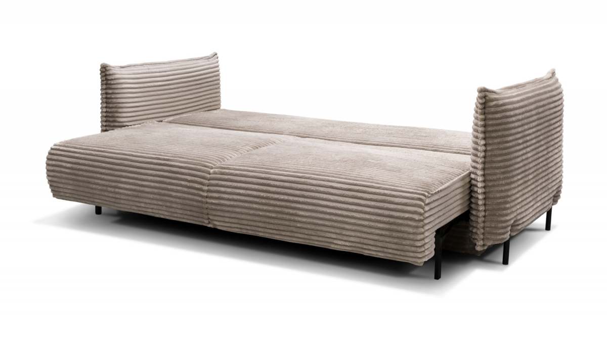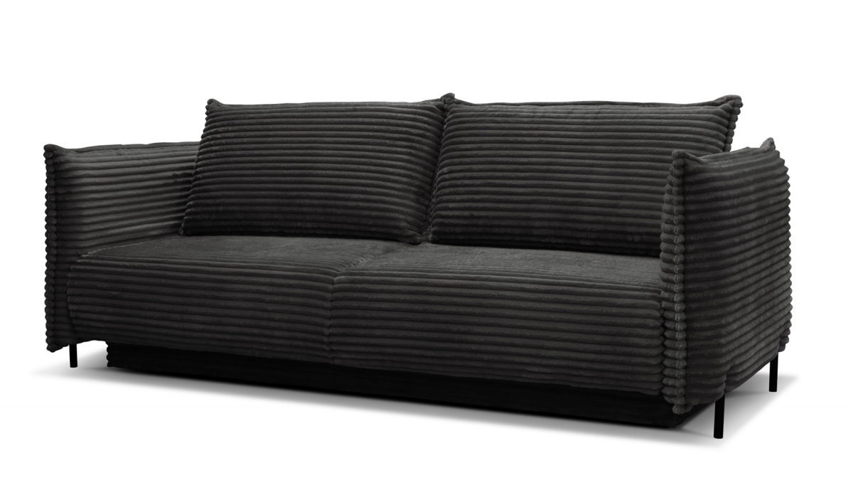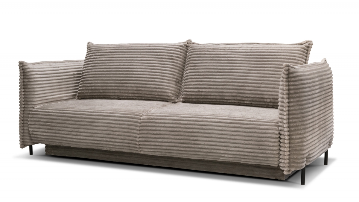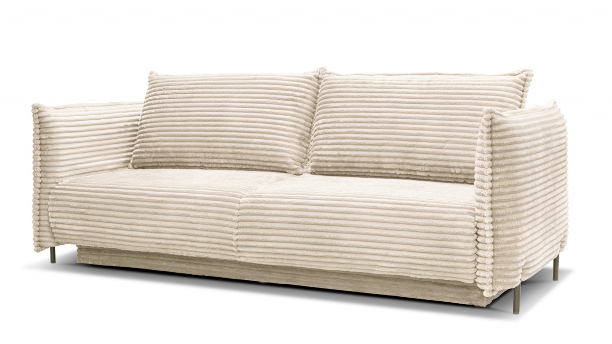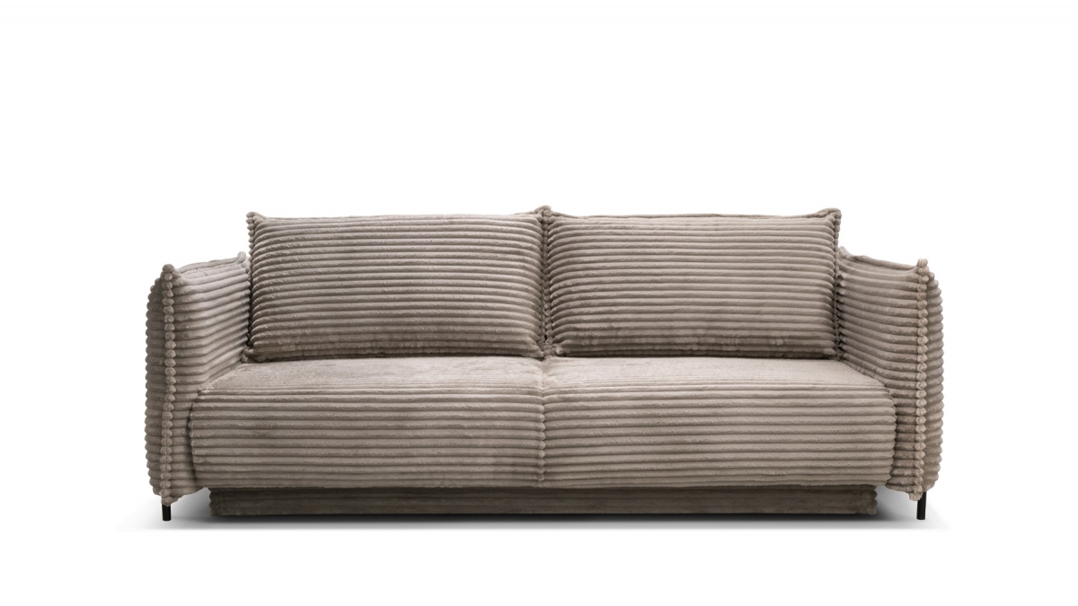Rendez votre salon incontournable en craquant pour le canapé convertible en velours côtelé Sorrento. Son design balance entre les accoudoirs fins et très droits, l’assise large et confortable et le dossier aux coussins légèrement inclinés. Ce canapé 3 places joue aussi bien sur le plan esthétique que pratique : en quelques secondes, transformez-le en couchage deux places idéal pour recevoir ou vous détendre.