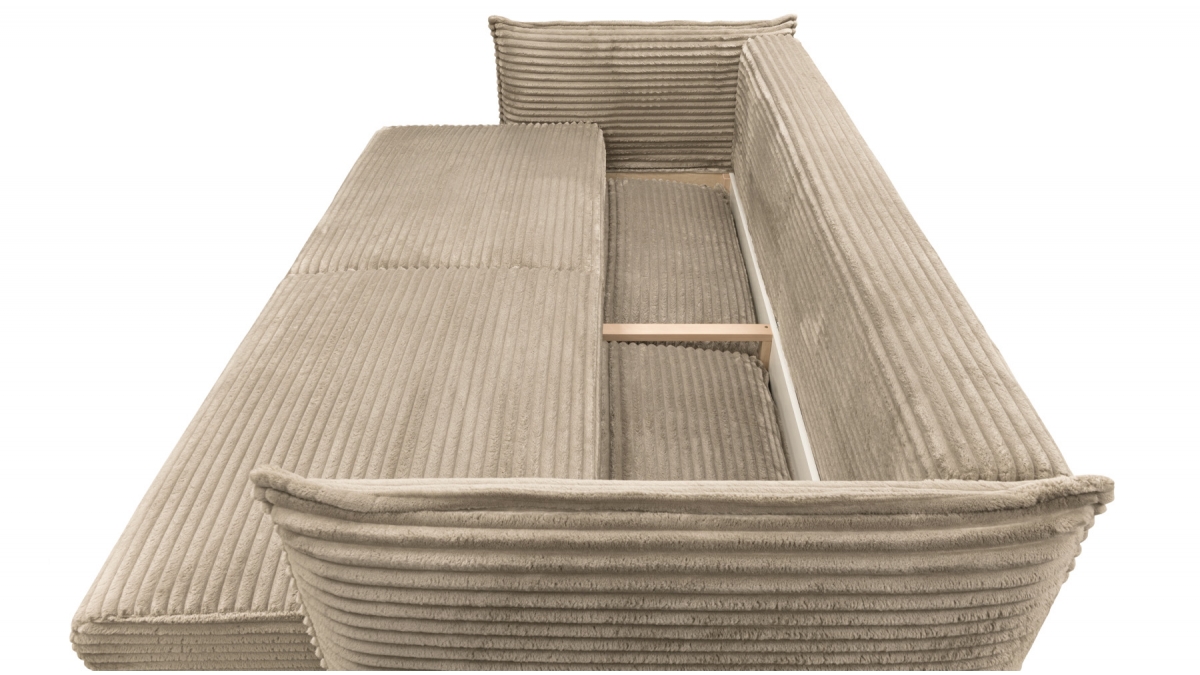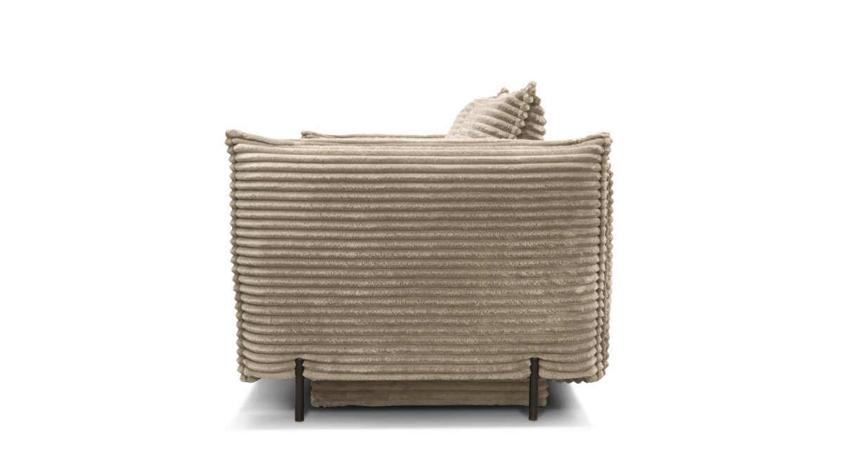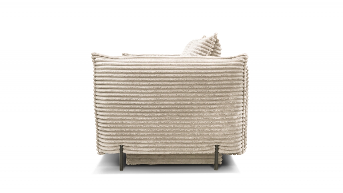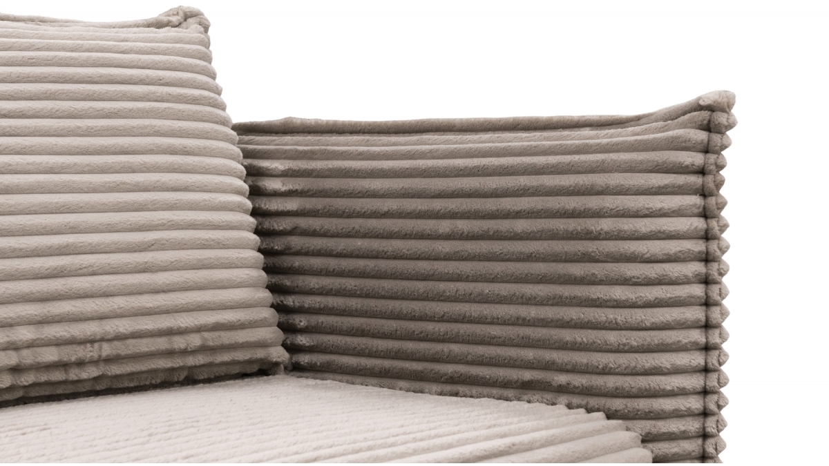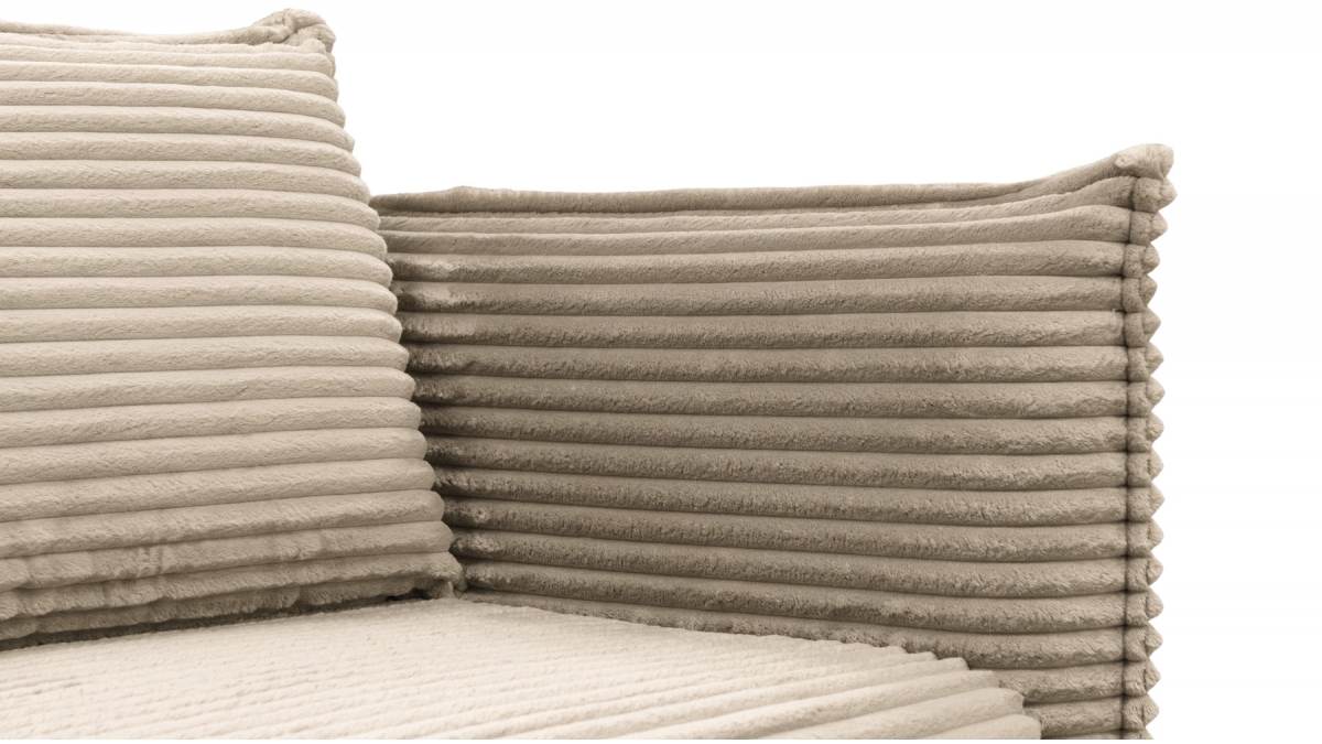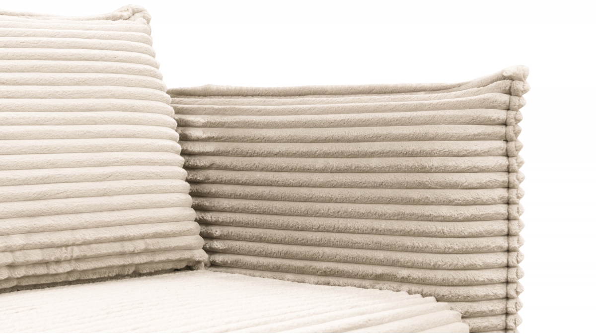 Son charme atypique lui vient aussi de son revêtement : le velours côtelé de ce modèle présente des bandelettes plus larges que la moyenne. Sans perdre la douceur caractéristique du velours, cette matière attire l’œil par son audace et son appel à la détente.