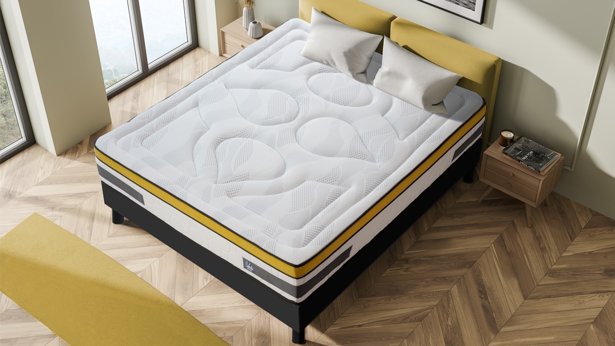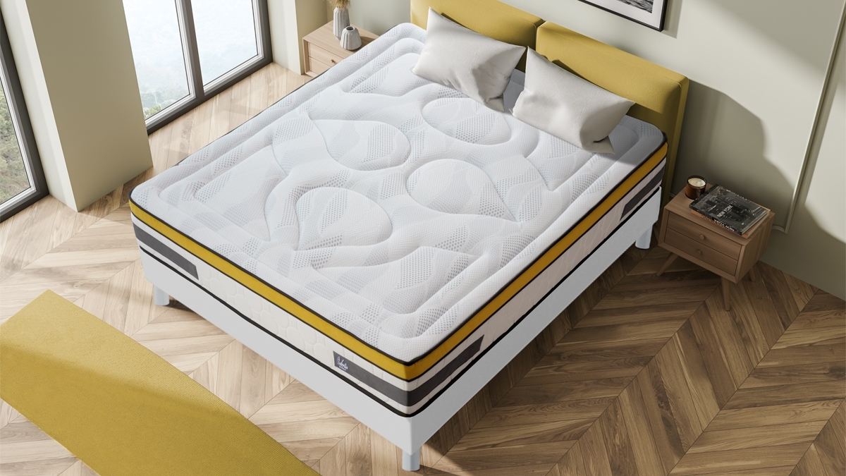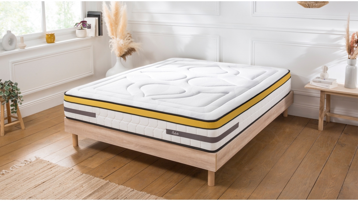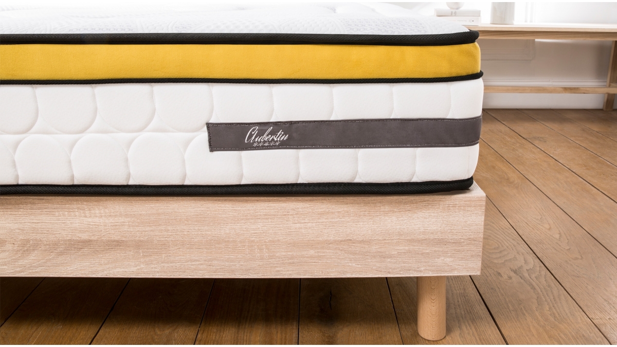 Le matelas Aubertin à la technologie Hybride : ressorts ensachés et mousse à mémoire de forme Viscotouch®, offrira à ses utilisateurs un confort de couchage unique et optimal.