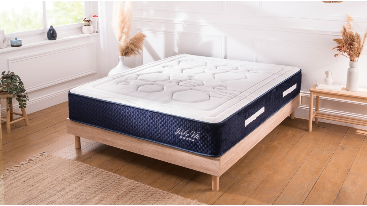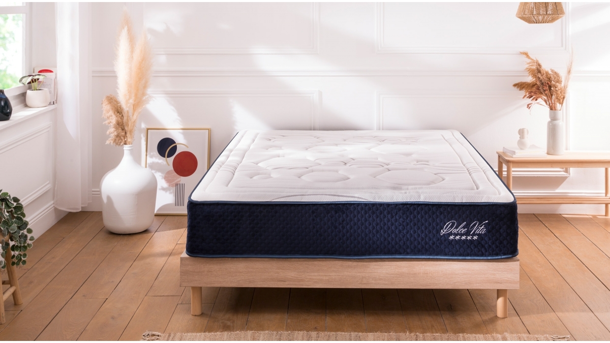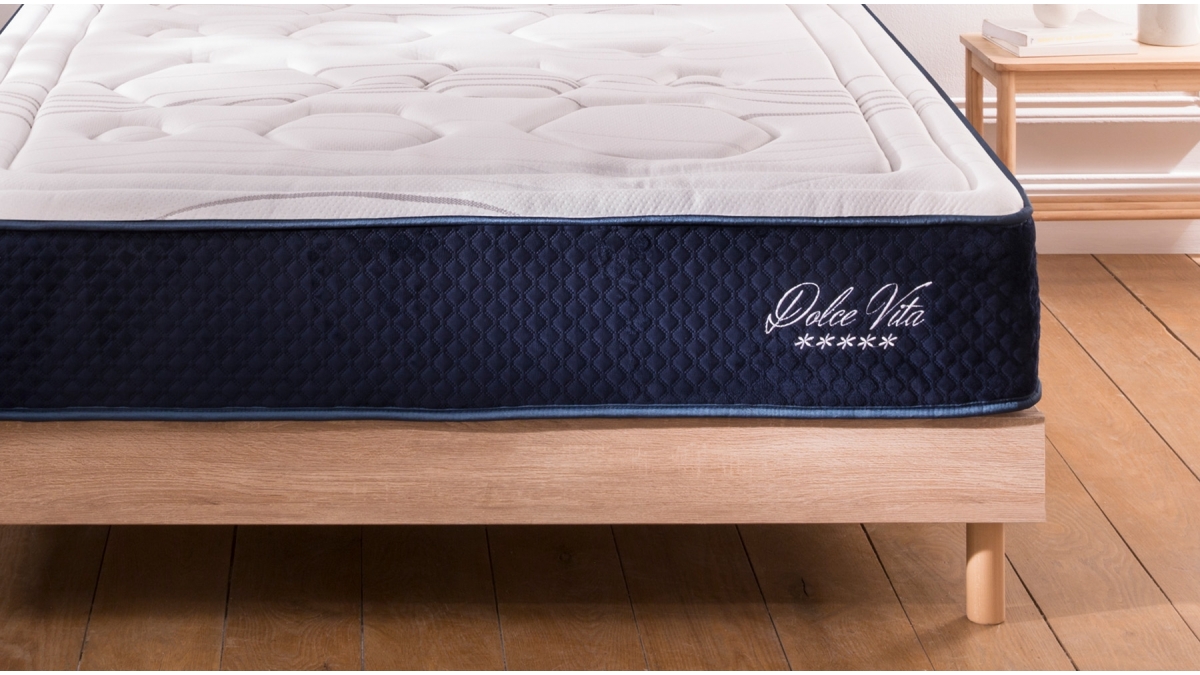 Le matelas Dolce Vita, avec son épaisseur de 28 cm, vous offre un confort haut de gamme qui saura satisfaire les plus exigeants. Les nombreux ressorts ensachés qui le composent confèrent au matelas une excellente indépendance de couchage. Doté d’une généreuse couche de mousse polyuréthane à mémoire de forme, ce modèle permet de soulager les douleurs au niveau des lombaires et d’éliminer vos points de pressions. Le tissu stretch qui l’enveloppe, quant à lui, absorbe l’humidité pour éviter les sensations de chaleur désagréables.