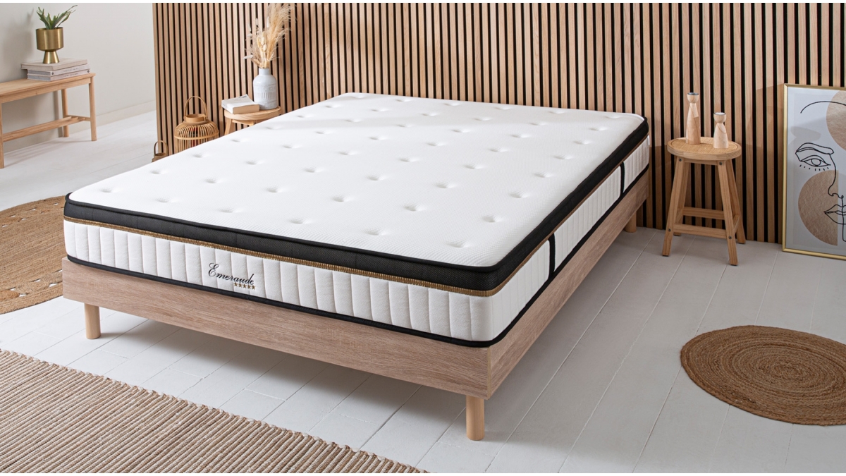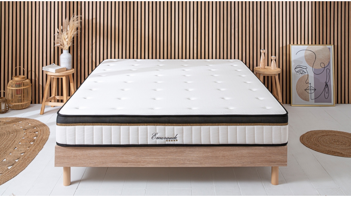 Le matelas EMERAUDE combine trois types de mousses polyuréthanes pour un matelas moelleux en accueil et ferme en profondeur. Doté d’une généreuse épaisseur de mousse polyuréthane à mémoire de forme, il s’adapte à toutes morphologies et offre un confort unique et optimal. Grâce à ses caractéristiques exceptionnelles et à la technologie AIR SYSTEM que compose ce matelas, il vous garantit une excellente indépendance de couchage. Si l’un(e) des partenaires bouge dans son sommeil, l’autre peut passer une nuit tranquille sans être dérangé(e).