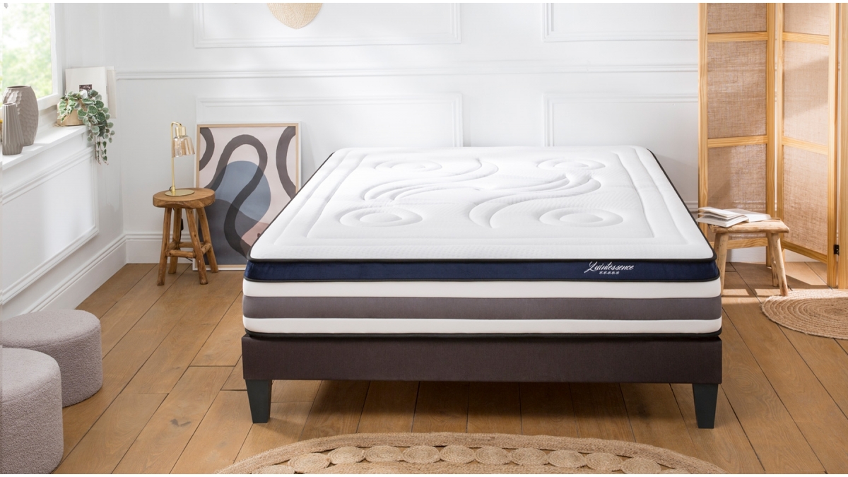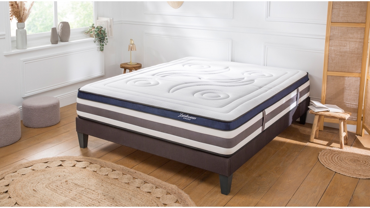 Le rêve absolu pour tous les rêveurs, le matelas Quintessence est le matelas cocooning par excellence. Cet ensemble comprend un sommier kit bois.