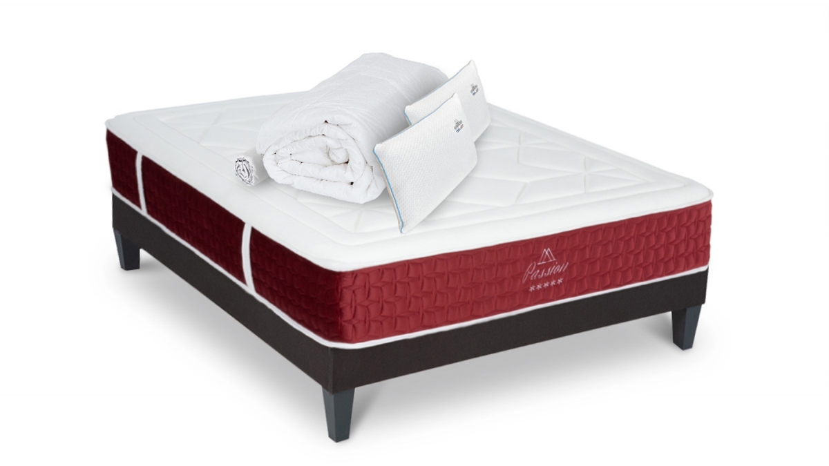Caractéristiques du pack Accessoires | ▸ 1 protège matelas adapté à la dimension du matelas et 90x190/200 cm : 1 oreiller, 1 couette 140x200 cm - 140x190/200 cm : 2 oreillers, 1 couette 200x200 cm - 160x200 cm : 2 oreillers, 1 couette 220x240 cm - 180x200 cm : 2 oreillers, 1 couette 240x260 cm |