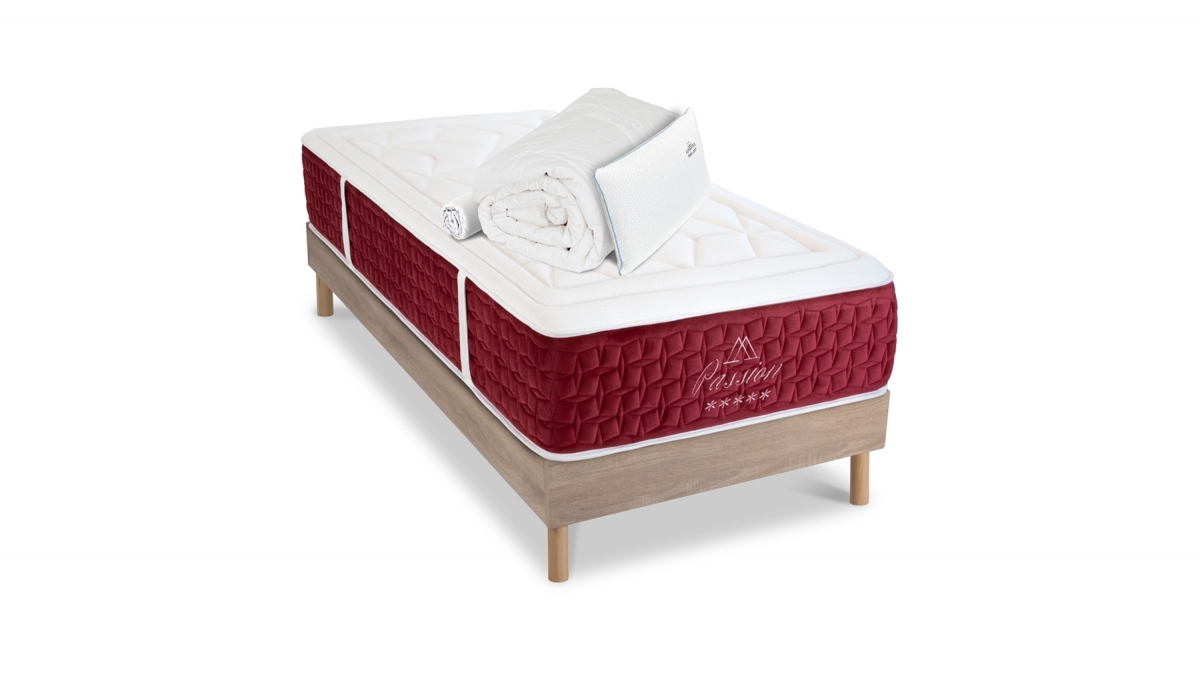 Matelas | Composition du coutil (tissu) | ▸ 4 cm de mousse polyuréthane à Mémoire de Forme + 4 cm de mousse polyuréthane Supersoft ++ 18 cm de Ressorts Ensachés + 3 cm de mousse polyuréthane densité 25kg/m³. |