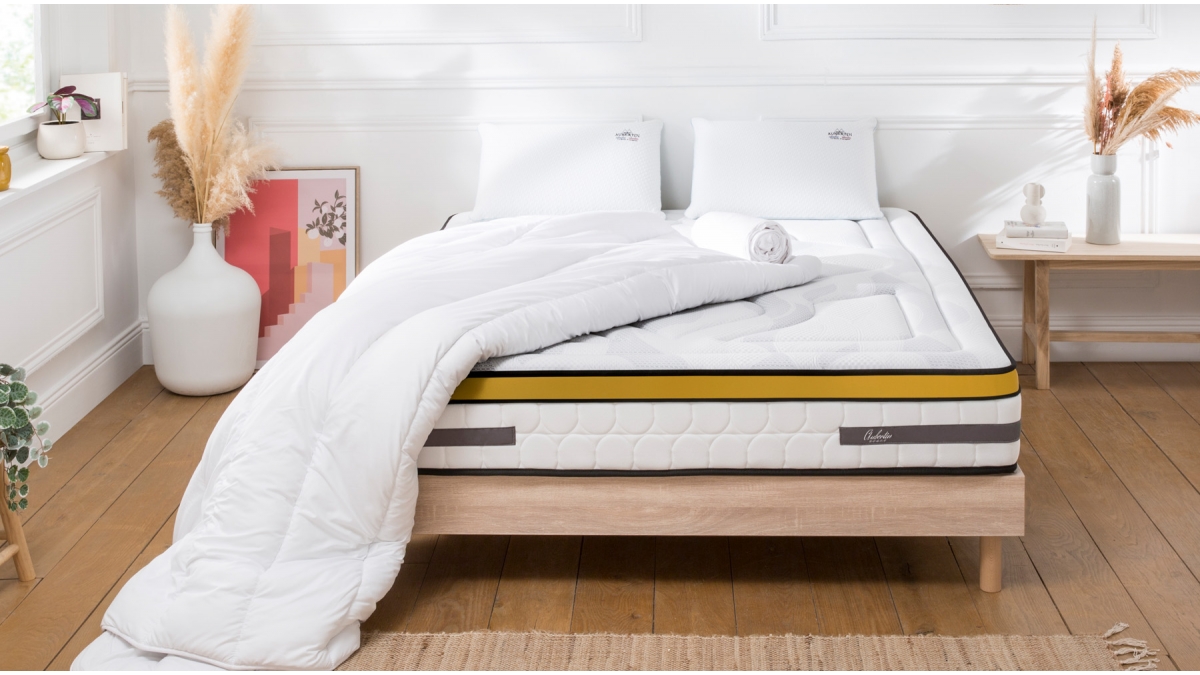 Le matelas Aubertin à la technologie Hybride : ressorts ensachés et mousse à mémoire de forme Viscotouch®, offrira à ses utilisateurs un confort de couchage unique et optimal.